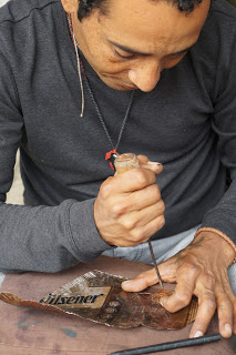Rolando un lugareño de Ataco municipio de Ahuachapán, tiene seis años de realizar el arte en repujado en la lata, una forma muy artística de ganarse la vida y el sustento diario de el y su familia. su esposa le ayuda a realizar el proceso de repujado y a vender todo el producto que realizan, en las calles de ataco un lugar muy pintoresco y rico en cultura turística y artesanías, las cuales se pueden disfrutar y adquirir a precios muy accesibles.